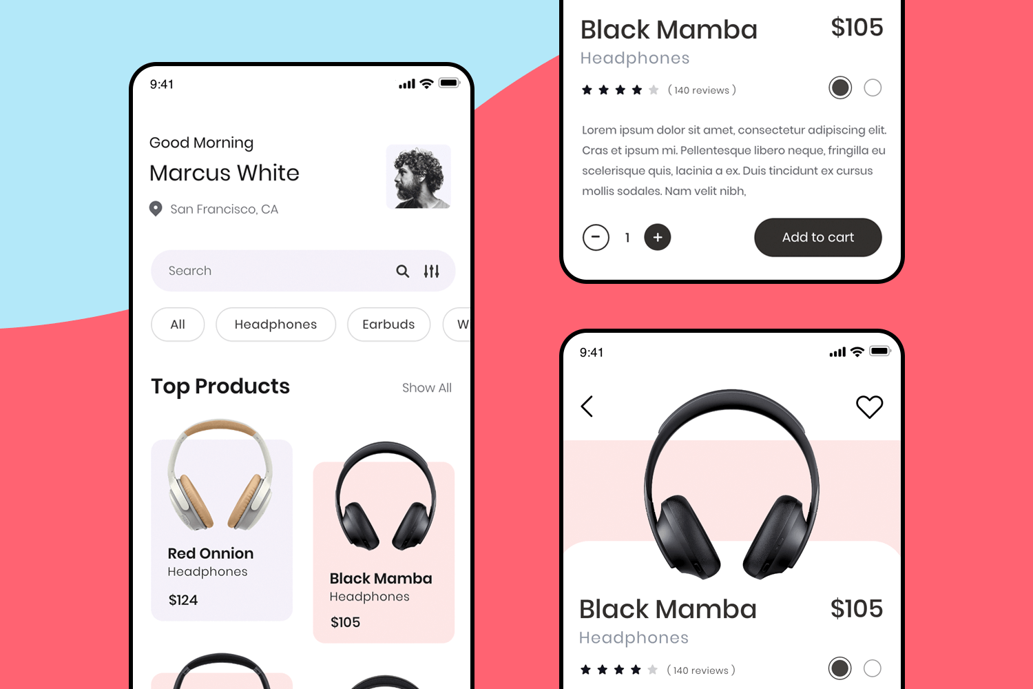 This one’s all about making shopping an easy experience. The UI design is super simple, so you can quickly find what you’re looking for. Everything is laid out clearly: product images, prices, and options like size or color.