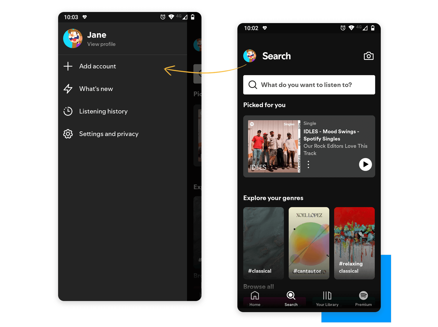 Description: A menu that’s hidden until you tap a button or swipe your finger, then it slides out from the side of the screen.