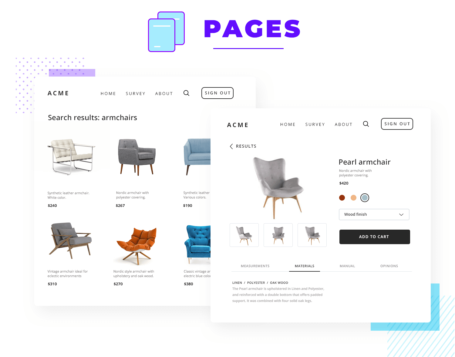 At this stage, design teams will have templates that show the general patterns of the relevant pages. Product pages, search results pages, home pages and so on will all have their respective templates that show the content structure and general look for later use. This can be very practical for products that are constantly expanding, with the templates helping the team create new pages quickly and maintain consistency throughout.