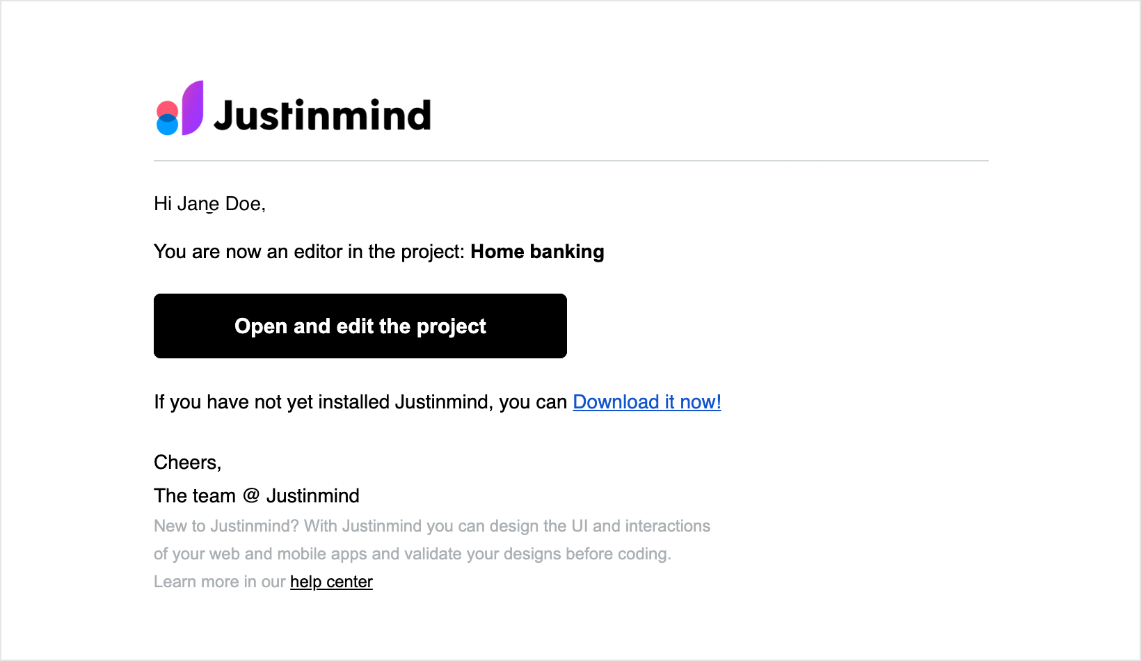 After a person has been invited to edit a project they will get an email notification to edit the project.