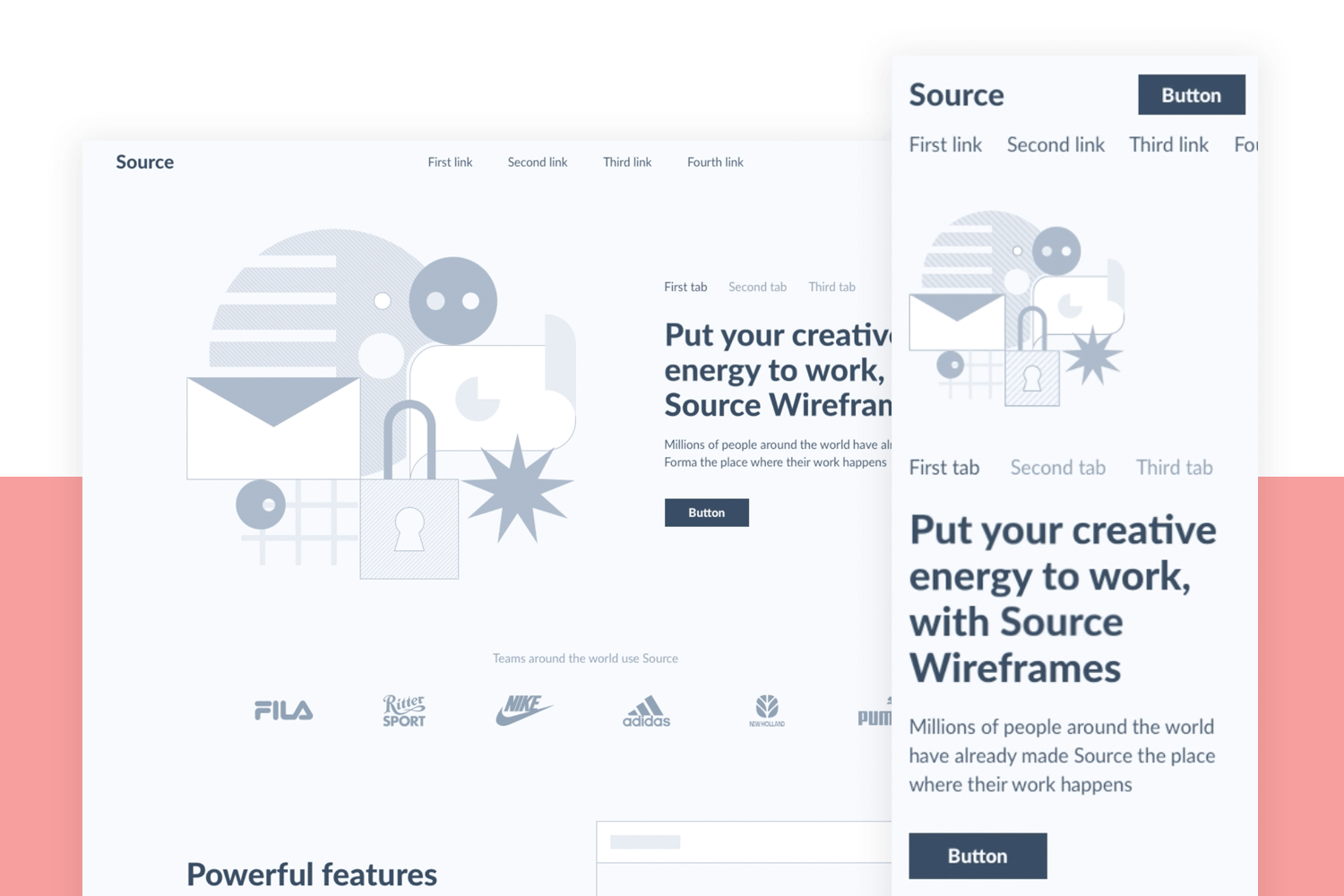 The Mobile wireframing UI kit serves the same purpose but focuses on elements better suited for mobile devices. You’ll find everything from icons, notification components, numeric keyboards to maps.