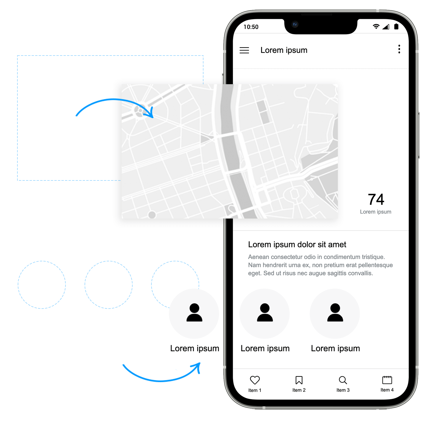 It also means that you don’t need to adapt web elements to fit your mobile app prototype. Unlike other mobile UI frameworks that have been scaled down from web equivalents, your Mobile Wireframing UI design system has been built from scratch using standard dimensions. No need to worry about how web elements will reflow or images will scale on mobile device screens!