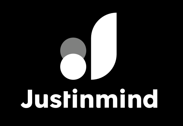 The Justinmind trademark appears in color and black/white (both versions might be used in positive and negative) No other colors are permitted.