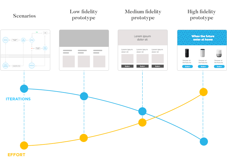 The key thing about prototypes is that they are flexible – allowing several team members to make changes, add things and remove things in no time at all. As prototyping tools’ interfaces become more and more user-friendly, designing and changing the prototype becomes easier and faster.