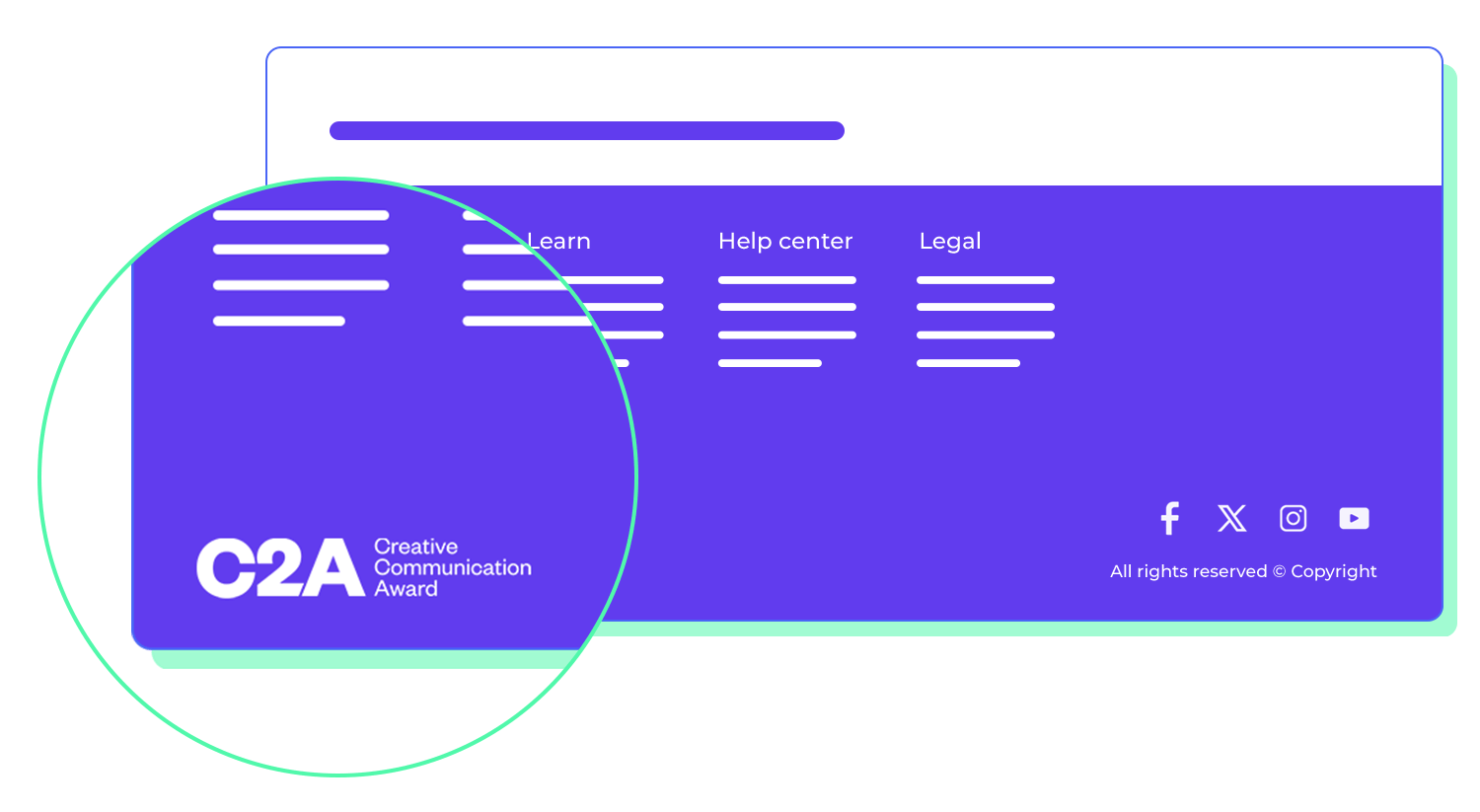 A great footer design can also help people find important tidbits that make all the difference when it comes to building trust such as awards, certificates and memberships of certain associations. This gives your website the so-called “halo” effect, thus making users trust your website more, making them hang around that bit longer, maybe even converting them into a lead or a subscriber.