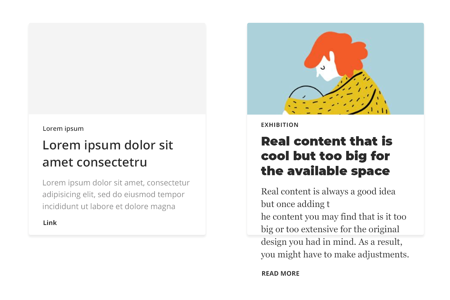 Text overflow and alignment: writing copy doesn’t always lead to a perfect match in terms of space required for text or text alignment. It’s also incredibly challenging to account for this variable without the real content.